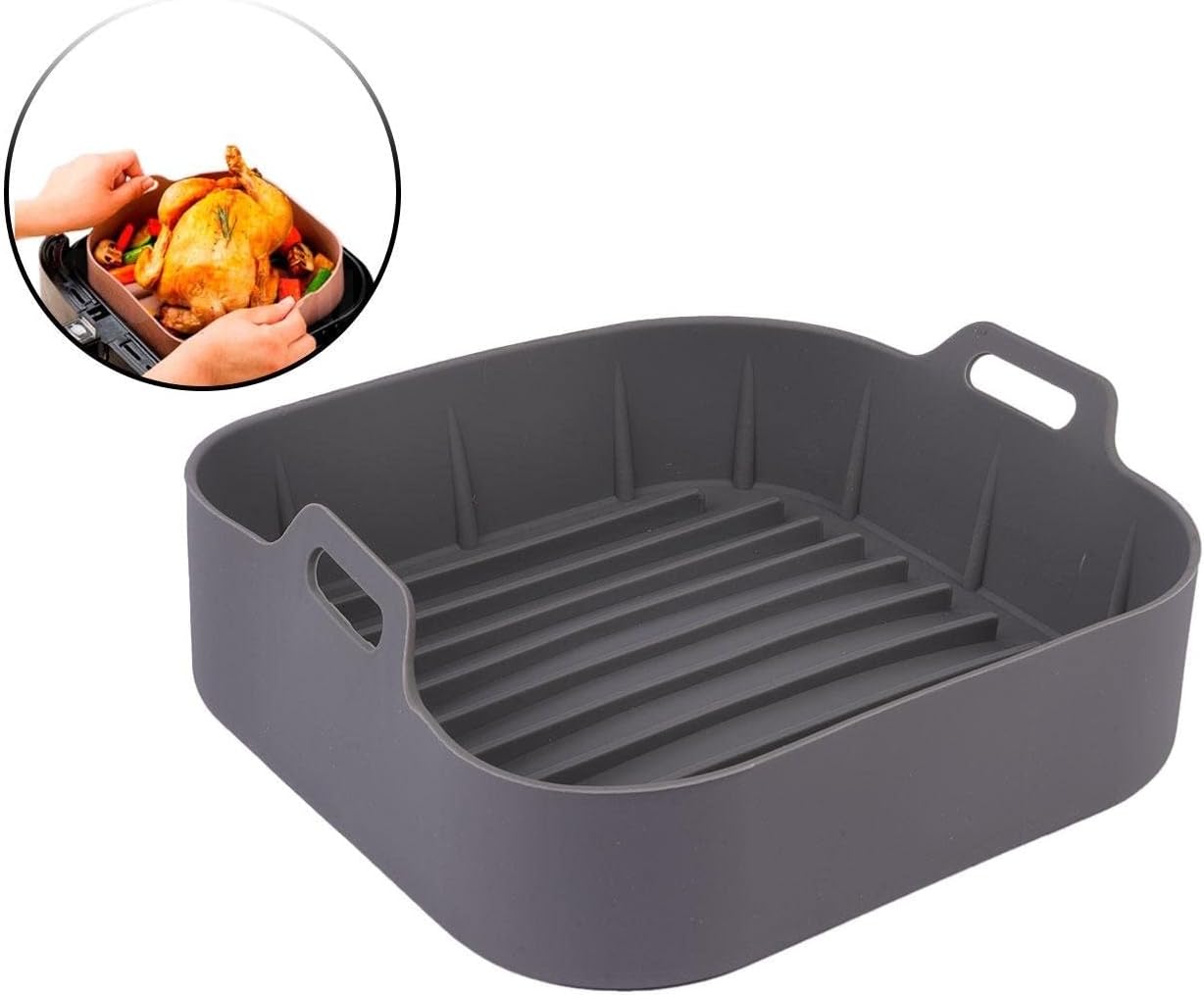 Panela de Silicone Quadrada Fritadeira Microondas C/Alça Forma 20x20cm Cesto para Air Fryer Deixe um comentário / AchadinhosVER OFERTA