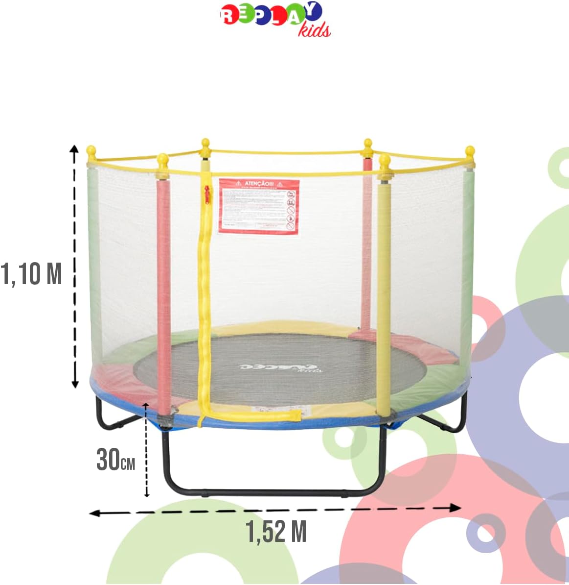 Replay Kids Cama Elástica Pula Pula Trampolim 1,52m, Rede e Lona de Salto com Proteção UV, 36 Molas Revestidas em PVC (até 50 kgs), Multicolorida Deixe um comentário / AchadinhosVER OFERTA